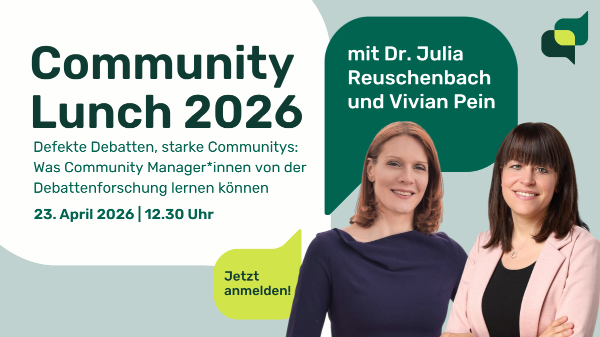 Und was bedeutet das für die konkrete Community-Arbeit? Genau darum geht es im zweiten Teil: Praxis-Insights und Quick Wins, die sich direkt umsetzen lassen. Nach dem Input gibt es Raum für Fragen in einem Q&A.