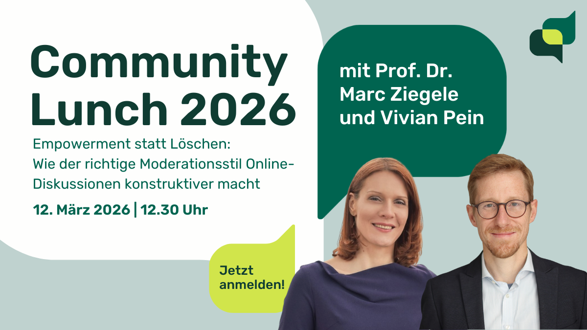 Online-Diskussionen geraten schnell aus dem Ruder. Hate Speech, Inzivilität und der reflexartige Griff zur Löschtaste sind in vielen Communitys Alltag. Doch reicht Löschen wirklich aus oder braucht es grundlegend andere Ansätze in der Moderation? Dieser Frage widmet sich der erste Community Lunch des Jahres 2026.